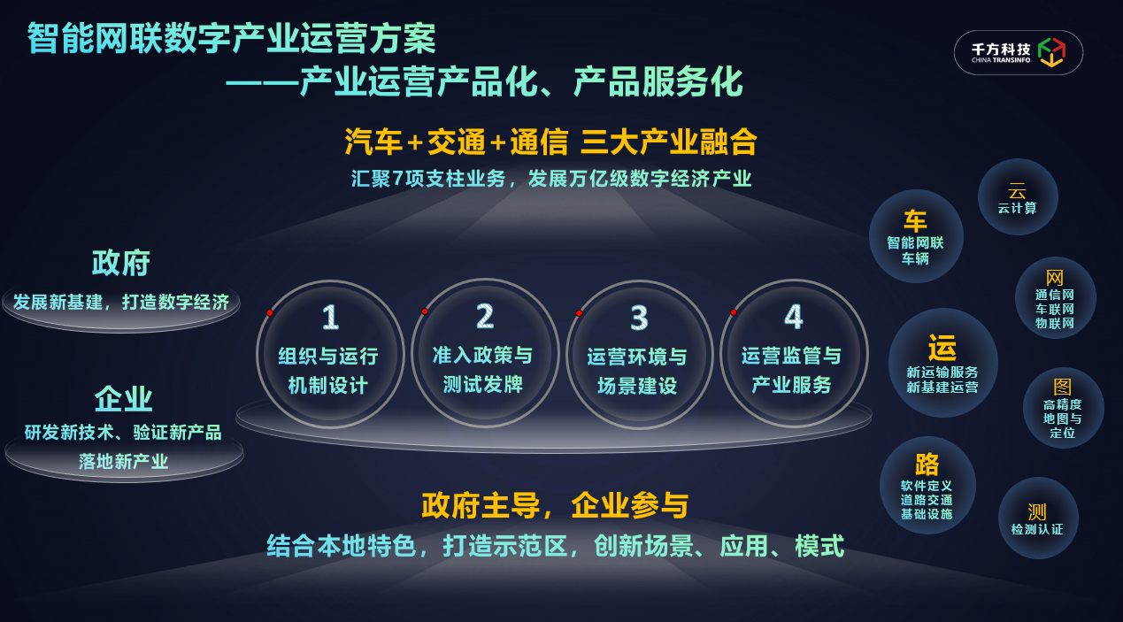 针对自动驾驶从示范到商业化试点的启航,今年会科技基于2015年至今在自动驾驶车路协同技术产品和解决方案,以及自动驾驶示范测试服务方面的沉淀和打磨,将服务于北京亦庄高级别自动驾驶示范区道路测试的能力和经验进行产品化,提出“智能网联数字产业运营方案”,可为各地自动驾驶示范区提供组织与运行机制设计、准入政策与牌照发放、运营环境与场景建设、运营监管与产业服务,通过标准化的服务型产品助力城市发展智能网联产业,继续助推自动驾驶商业化进程。